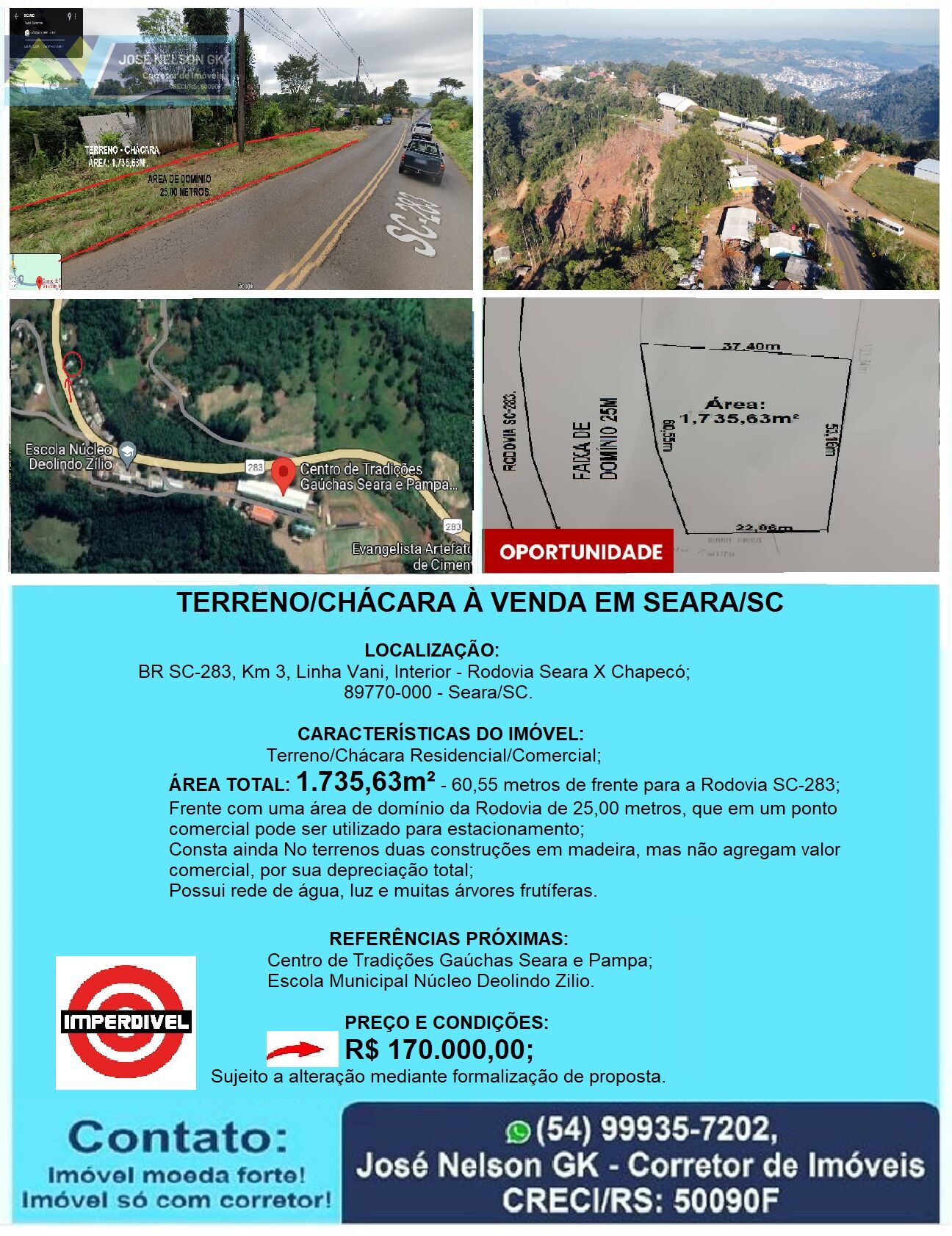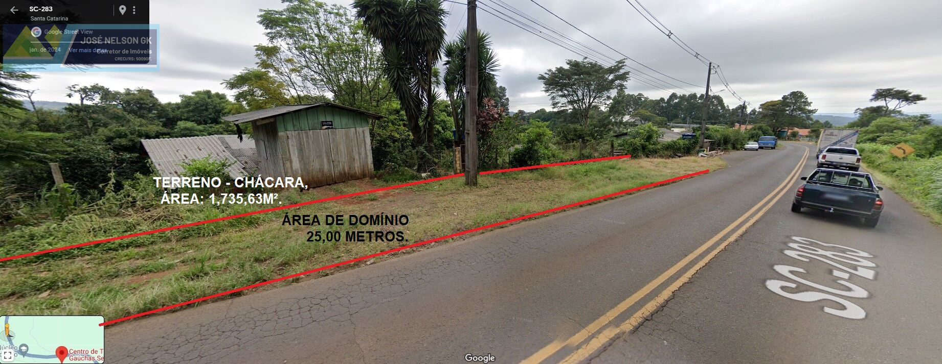 60,55 metros de frente para a Rodovia SC-283;